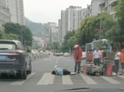 滨江花园发生车祸,摩托车都倒了