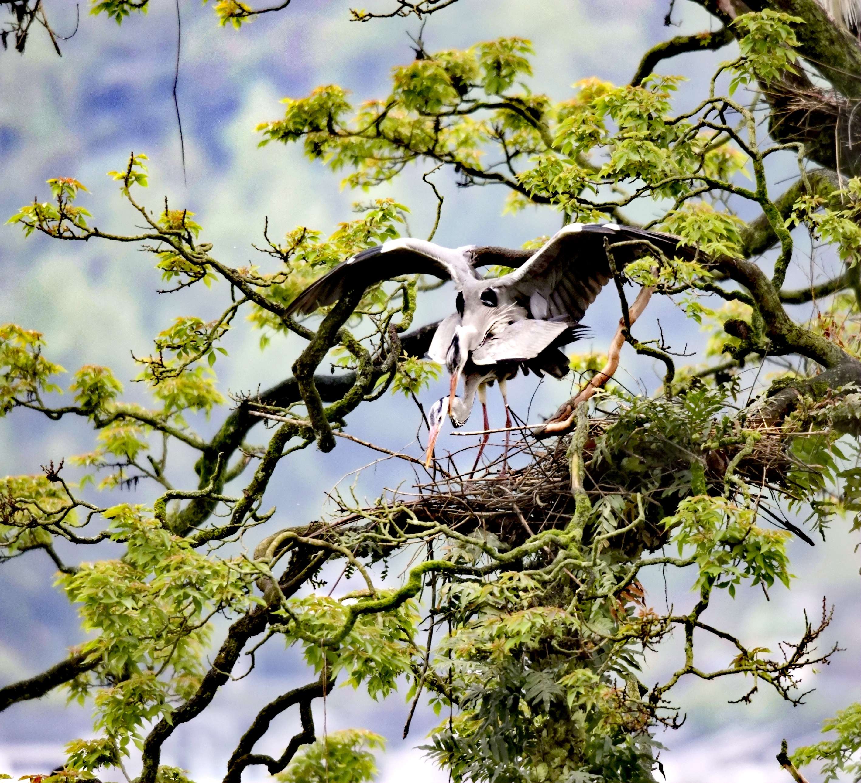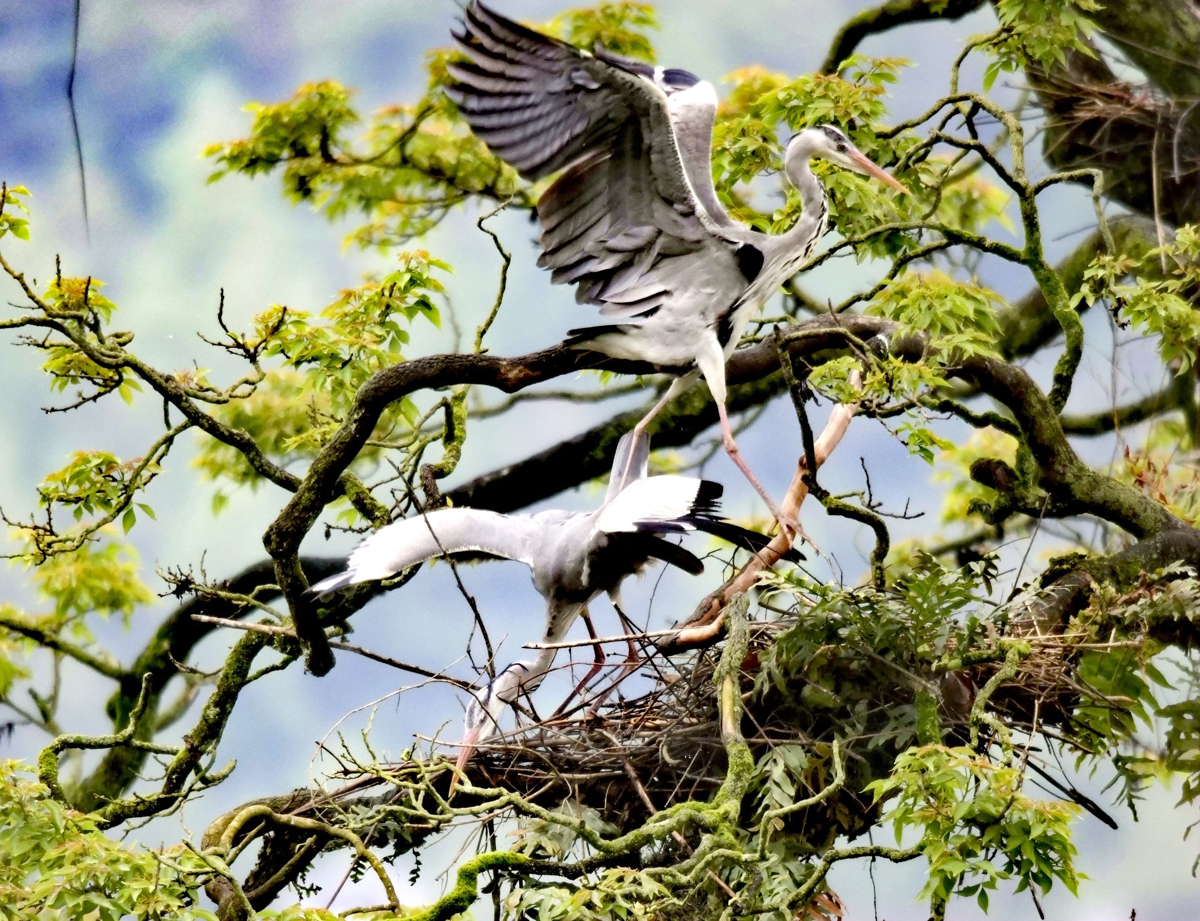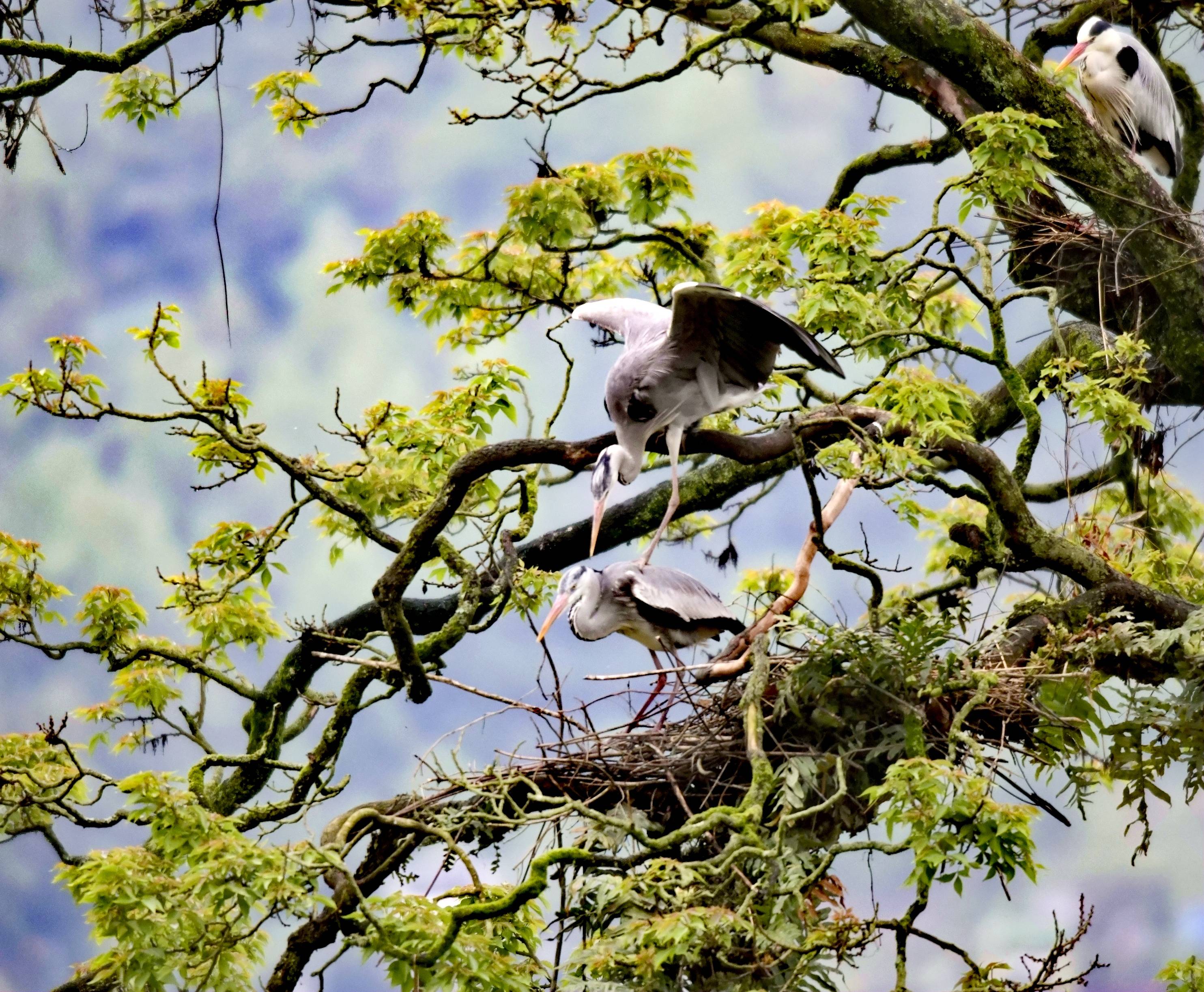 巢枝间的苍鹭侣